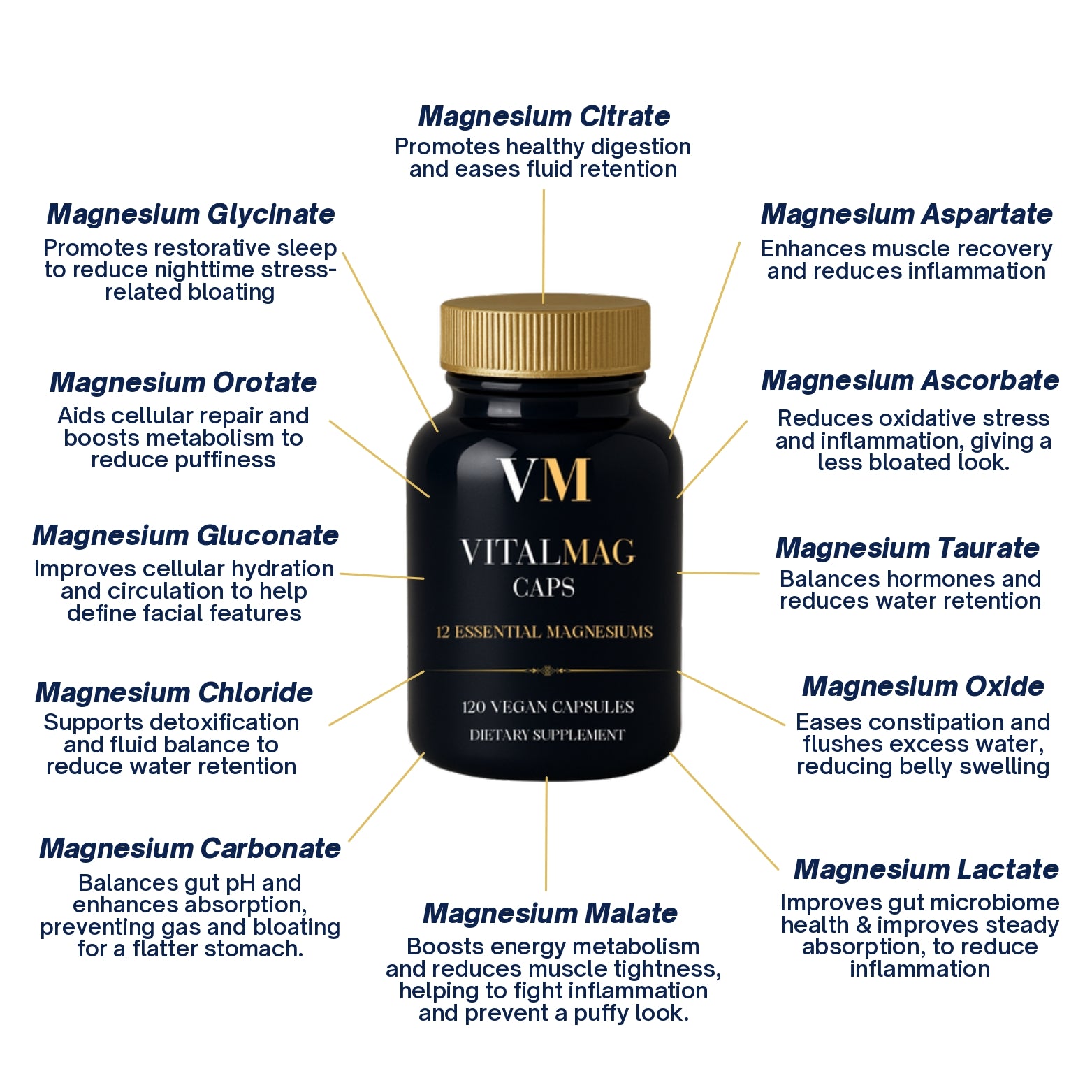 Experience reliable results with our unmatched formulation of 12 specific and vital magnesium types, designed to effectively address bloating and promote overall wellness, ensuring you feel your best day after day.